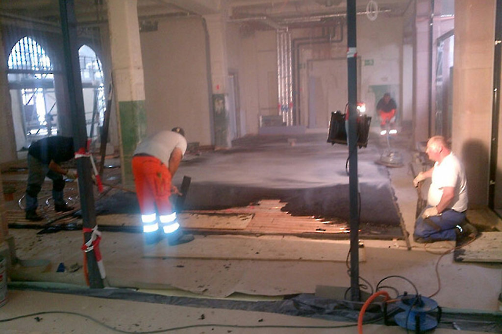 Einbau und Versiegelung von ca. 210 qm geschliffenem Gussasphalt im Untergeschoss.