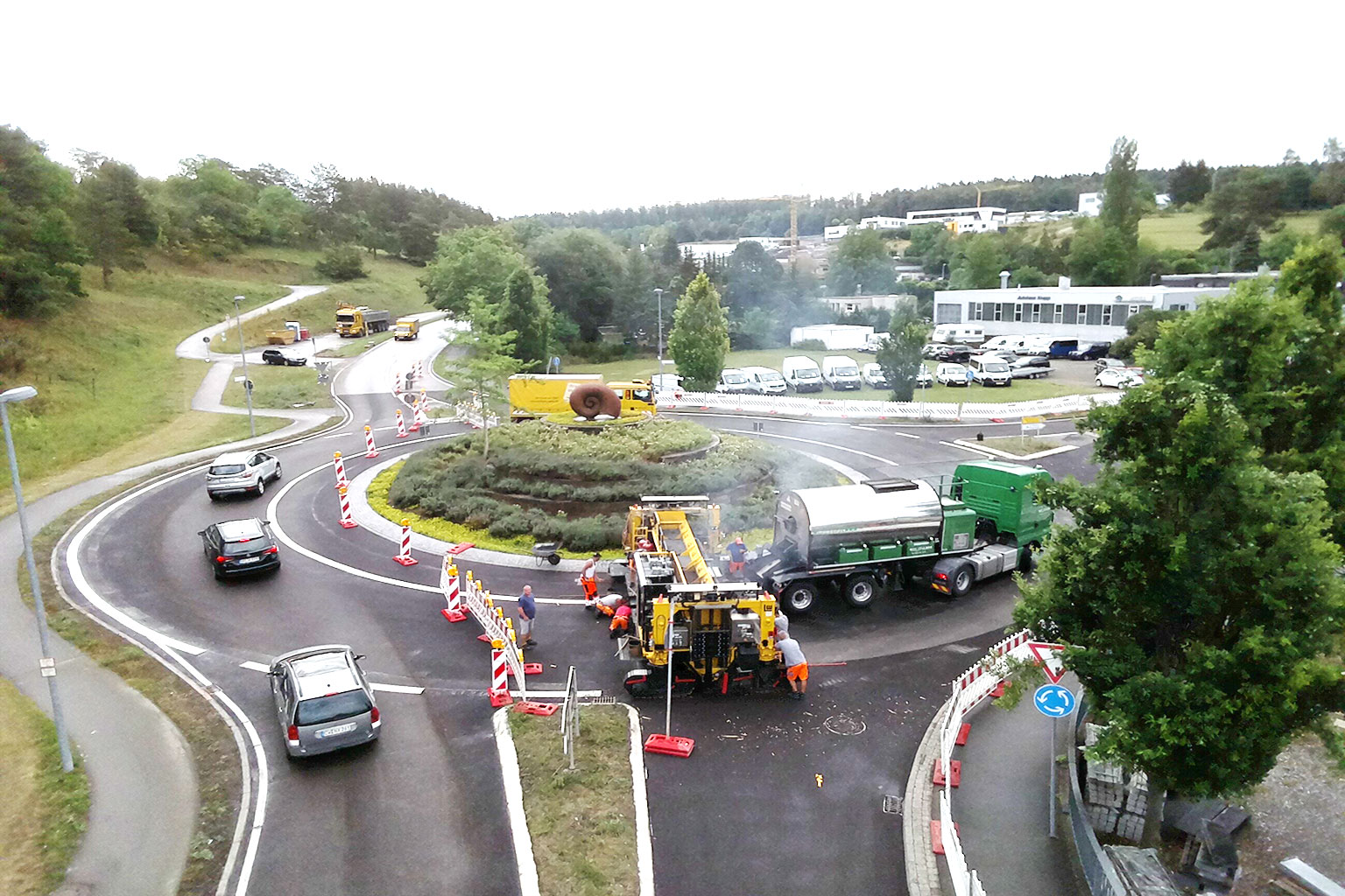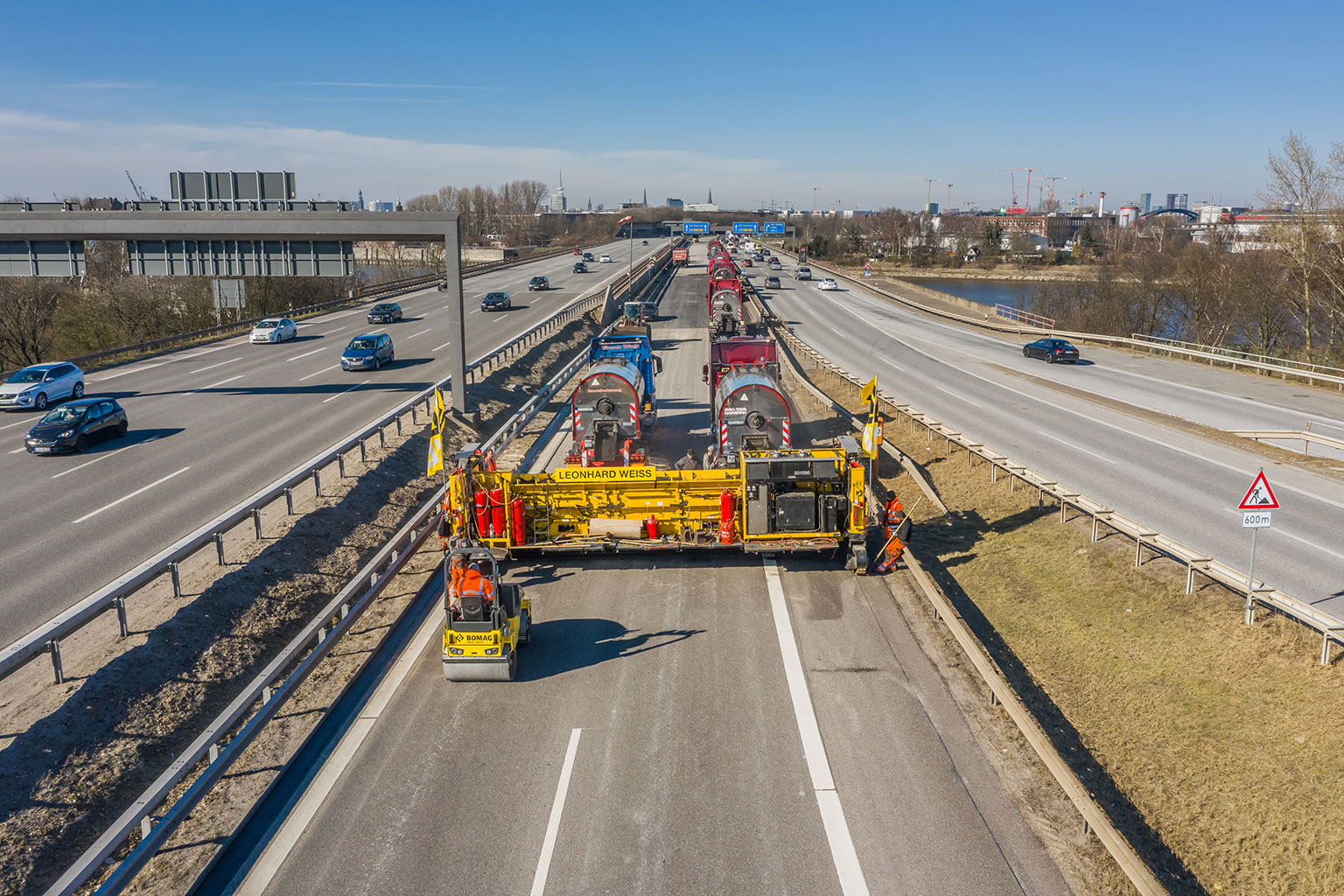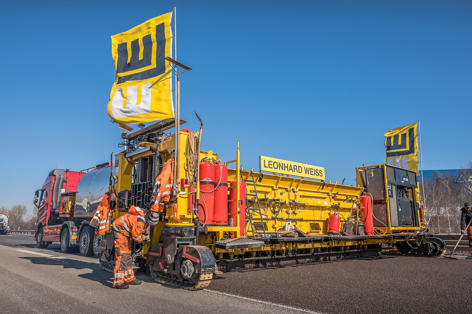Einbau unter fließendem Verkehr mit Teilsperrungen