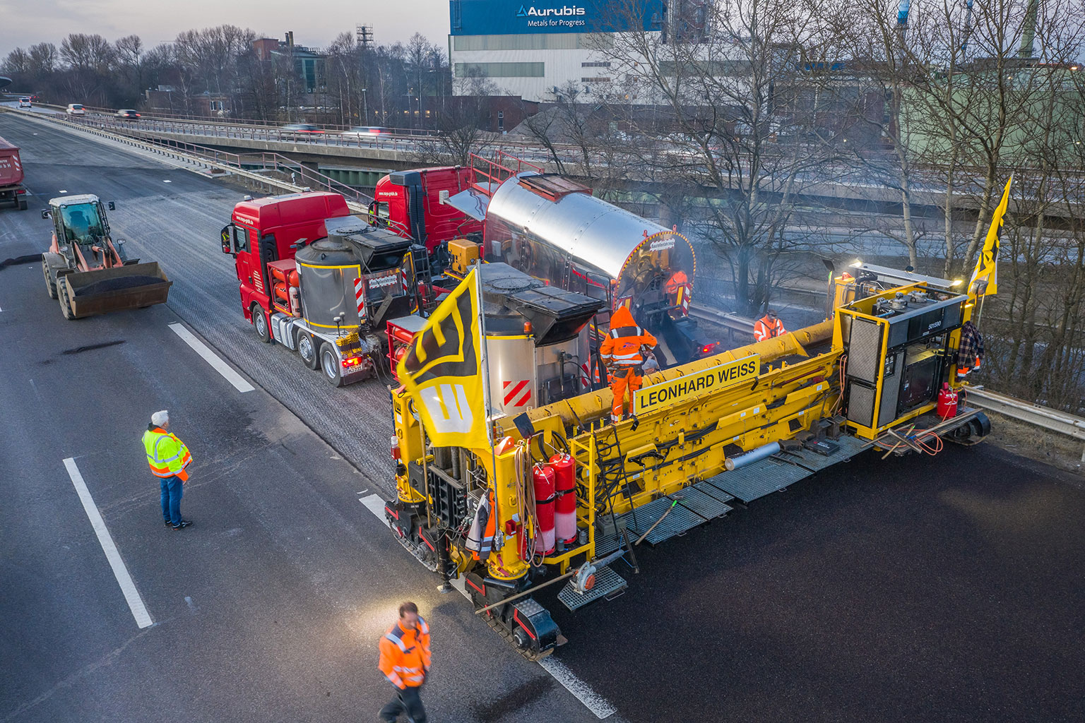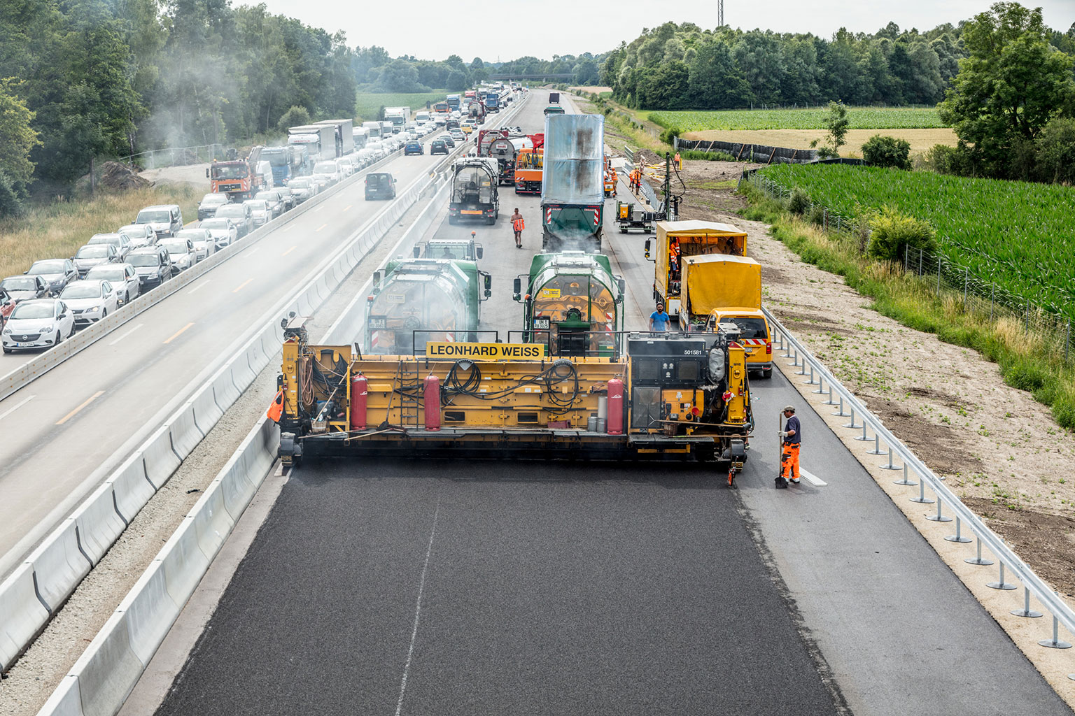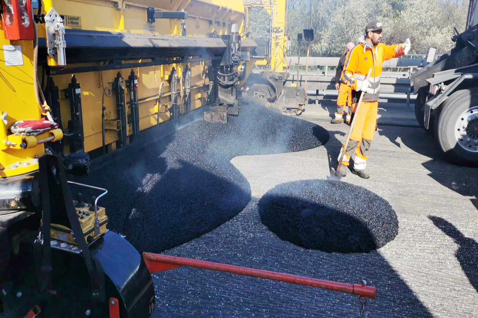 11.000 qm Grussasphaltdeckschicht auf Autobahn