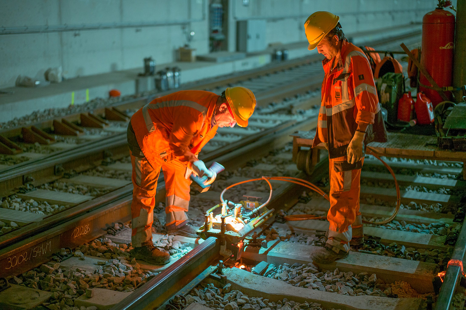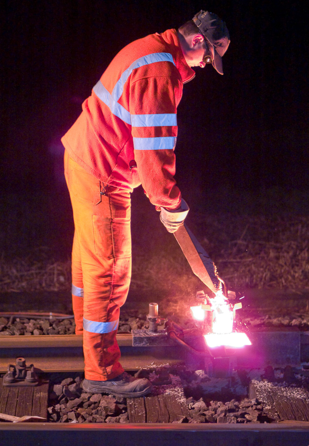 Wir realisieren alle Schweißarbeiten an Schienenwerkstoffen und Oberbauteilen in allen Verfahren - für Betriebsgleise der Deutschen Bahn AG nach Richtlinie 826.2050. I , Nebenbahnen und Verkehrsbetriebe.