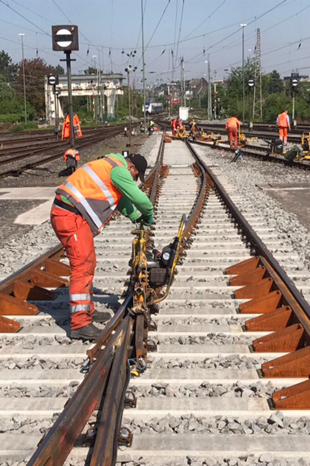 Unser eigenentwickeltes, DB-zugelassenes Schleifsystem "Profilia" schließt die Lücke zwischen maschineller und händischer Schienenbearbeitung in Gleisen und Weichen. Mit der "Profilia" ist die durchgehende und damit komplette Bearbeitung von Weichen in höchster Qualität möglich, insbesondere: