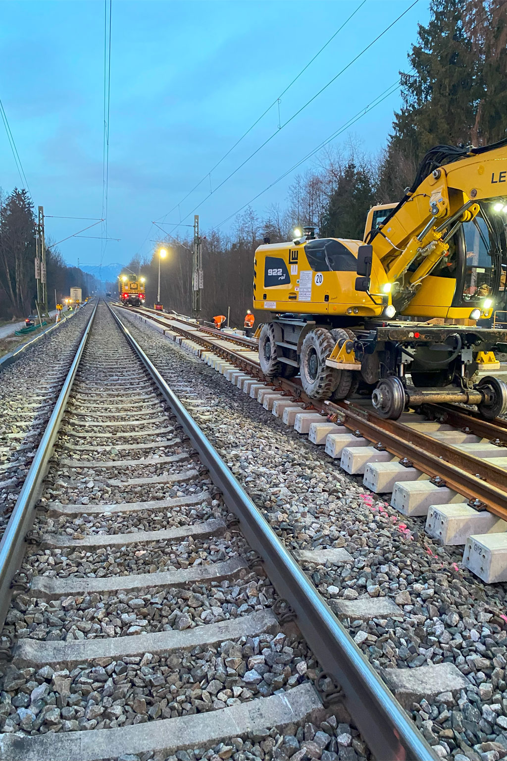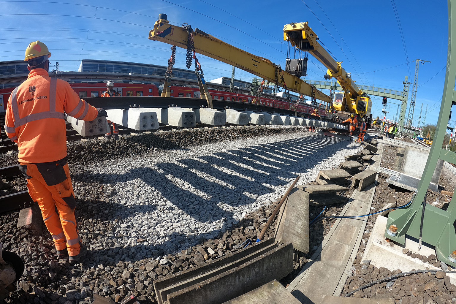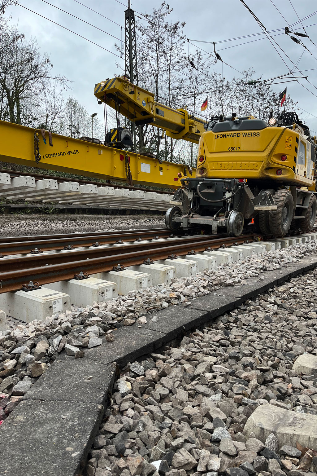 Weichen und Kreuzungen sind die Knotenpunkte im Gleisnetz, in denen sich Schienenwege teilen, kreuzen und wieder verbinden. Durch immer höhere Geschwindigkeiten und Radlasten unterliegen diese Punkte im Fahrweg einem erhöhten Verschleiß und bedürfen einer intensiven Wartung und Pflege. LEONHARD WEISS ist Ihr Spezialist für Neubau, Instandhaltung und Instandsetzung von Weichen - von der einfachen Industrieweiche bis zur komplizierten Hochgeschwindigkeitsweiche. Wir beherrschen sämtliche Bauarten des Oberbaus, ob in Schotteroberbau oder in Fester Fahrbahn. Mit unseren modernen Gleisbaukränen der Spitzenklasse sind wir in der Lage vorgefertigte Weichengroßteile in höchster Qualität unter dem rollenden Rad einzubauen.