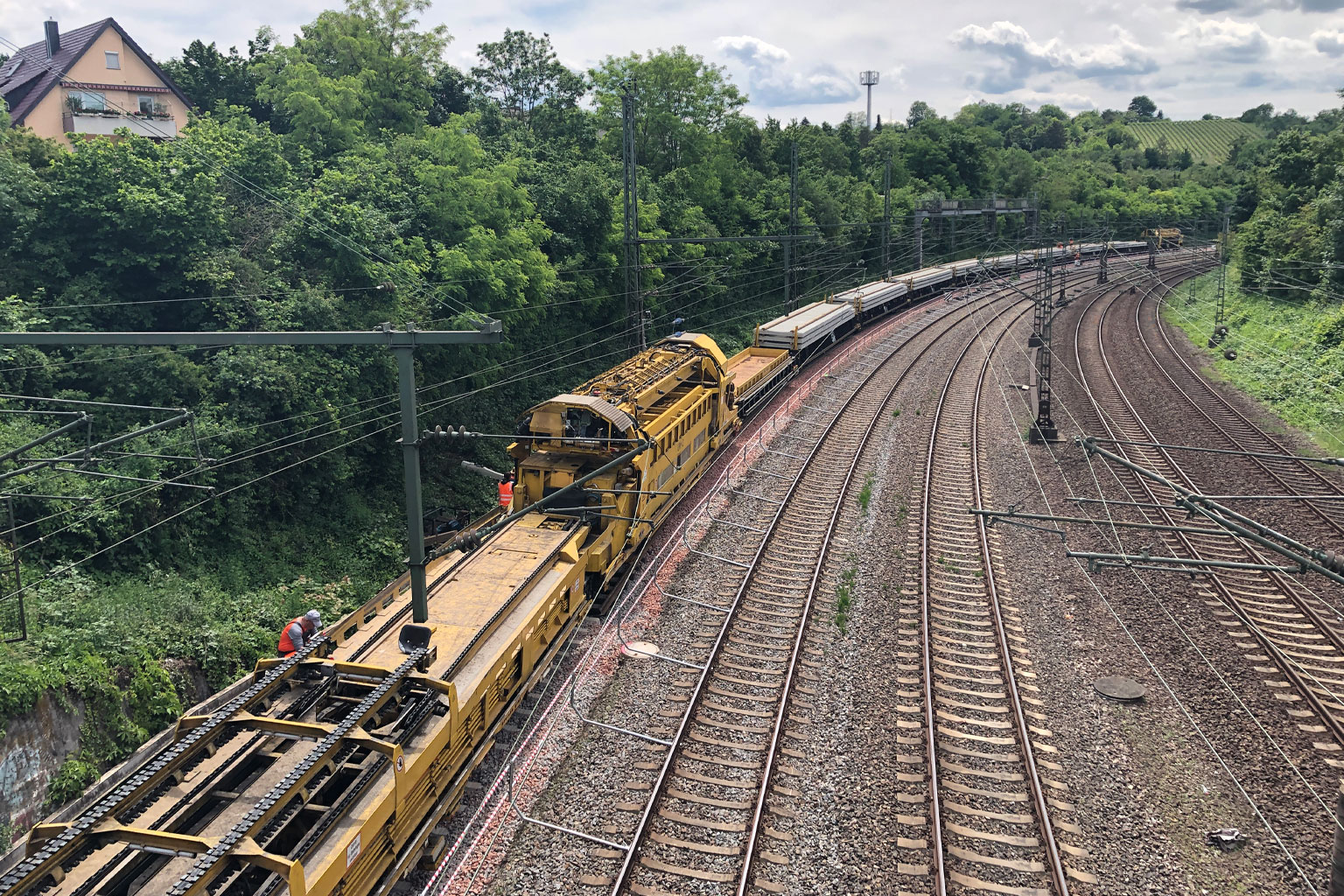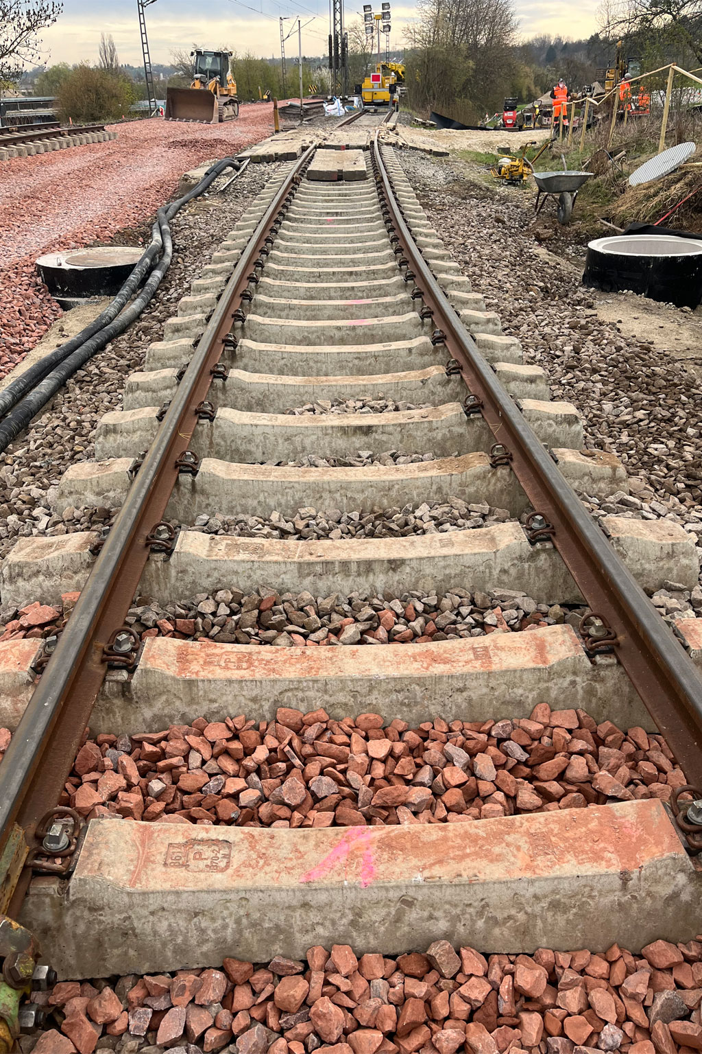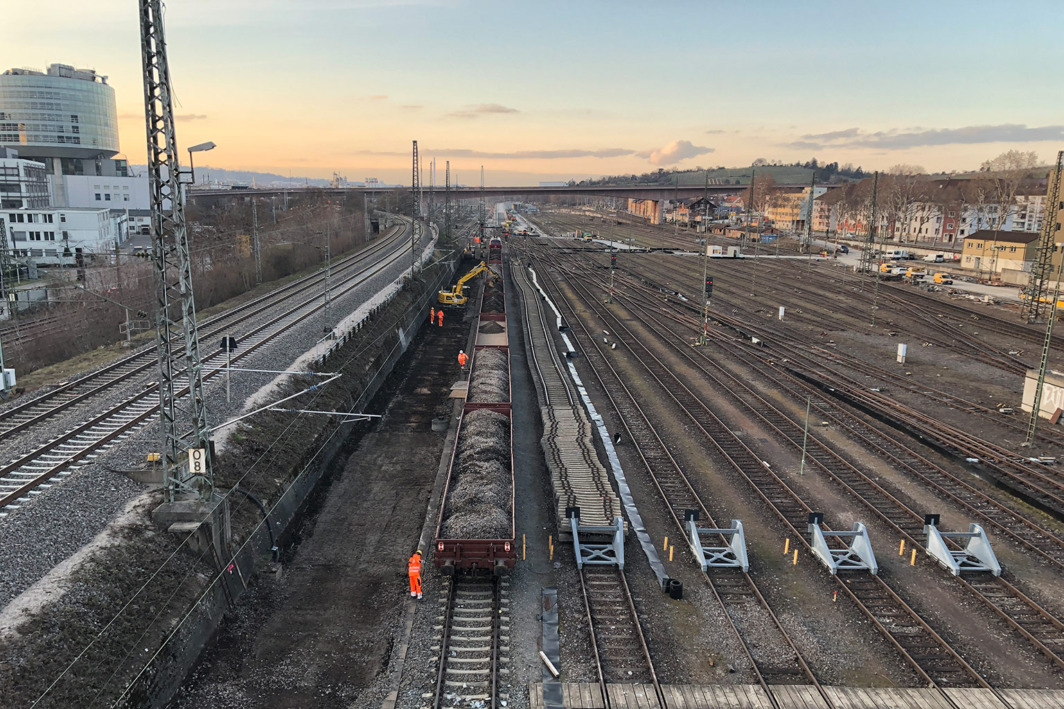 Erneuerung von fünf Weichen (2 Stk. EW 54-500 1:12, 2 Stk. IBW 54-500 1:12,1 Stk. IBW 54-500 1:14), gleichzeitig Erneuerung eines Durchlasses (DN 600) inklusive Kontrollschächten unterhalb von zwei Weichen. Ver- und Entsorgung per Bahnlogistik. Aufgrund der Streckensperrung Nürtingen-Wendlingen musste unsere gesamte Versorgung mit Neustoffen am Baubeginn nach Nürtingen transportiert werden. Gebaut wurde unter sehr strengen Umweltauflagen, die unser Baufeld stark eingeschränkt haben. Alles aus eigener Hand (ZWB, Kran, Laderaupe, Kippwägen und Stopfmaschine).