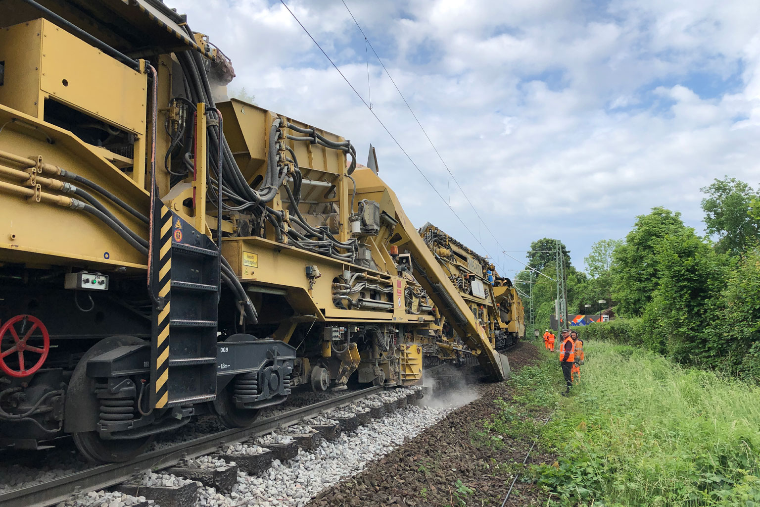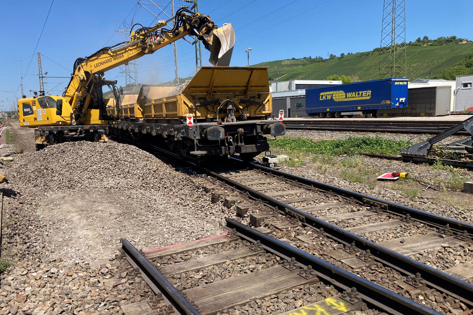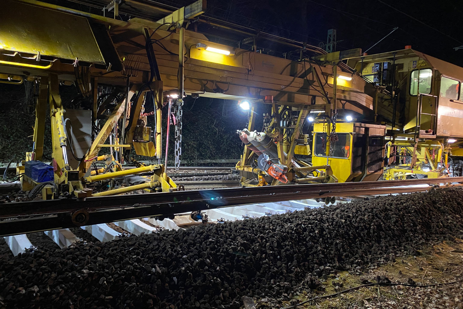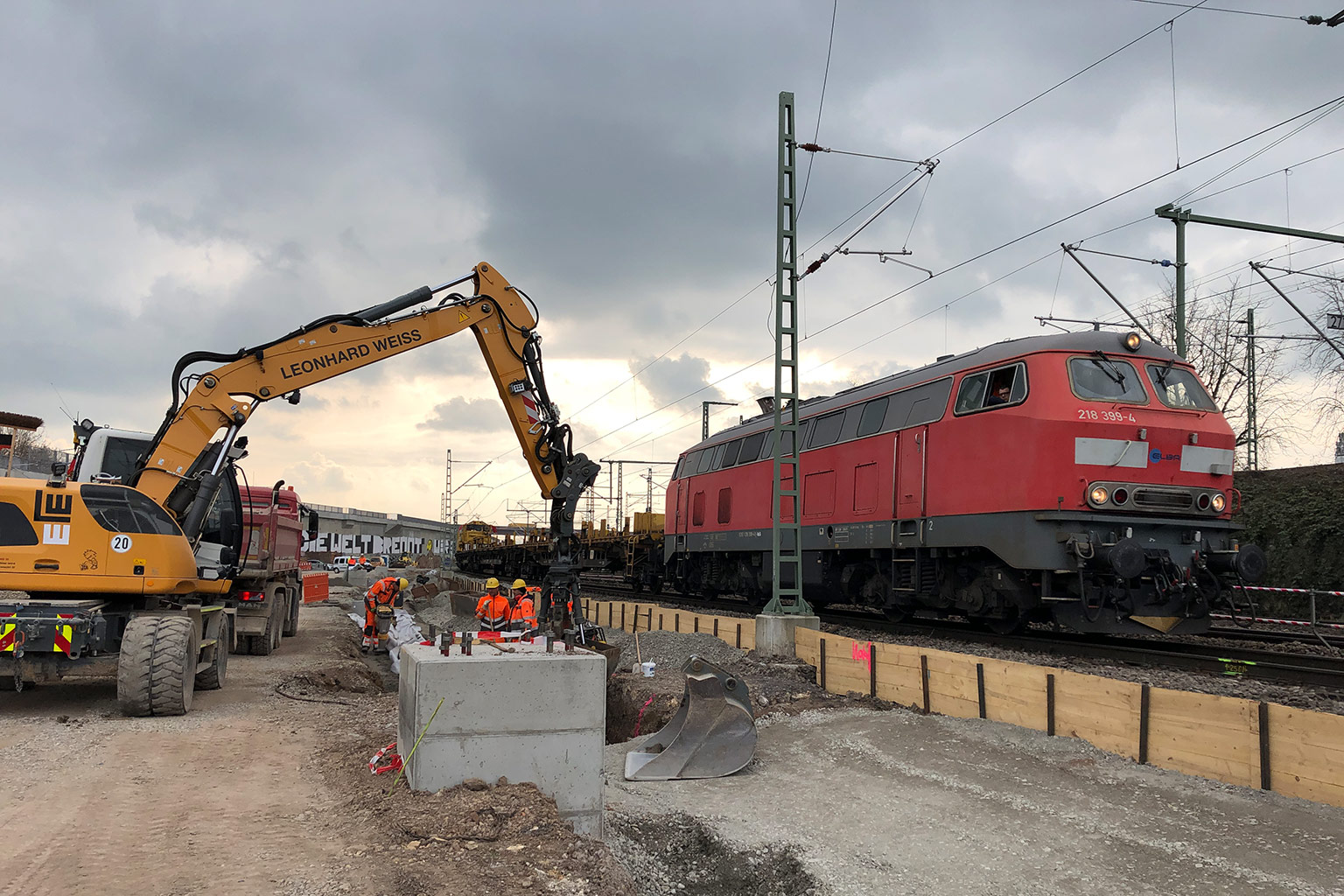 Erneuerung von fünf Weichen (2 Stk. EW 54-500 1:12, 2 Stk. IBW 54-500 1:12,1 Stk. IBW 54-500 1:14), gleichzeitig Erneuerung eines Durchlasses (DN 600) inklusive Kontrollschächten unterhalb von zwei Weichen. Ver- und Entsorgung per Bahnlogistik. Aufgrund der Streckensperrung Nürtingen-Wendlingen musste unsere gesamte Versorgung mit Neustoffen am Baubeginn nach Nürtingen transportiert werden. Gebaut wurde unter sehr strengen Umweltauflagen, die unser Baufeld stark eingeschränkt haben. Alles aus eigener Hand (ZWB, Kran, Laderaupe, Kippwägen und Stopfmaschine).