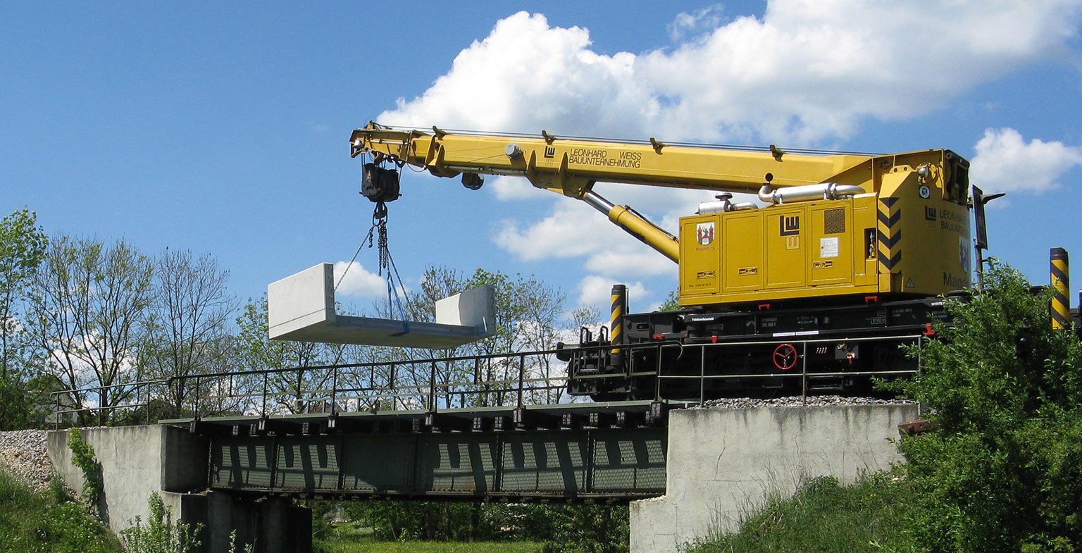 Innovative Maschinentechnologie war schon immer ein Markenzeichen von LEONHARD WEISS. Dank eigener Entwicklungsarbeit verfügen wir über leistungsfähige Gleisbaukrane.
