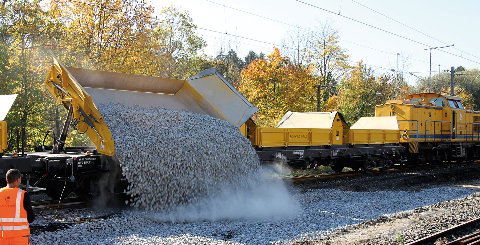 Der von LEONHARD WEISS entwickelte Kippwagen MK 45 DH ist für den offenen Transport von losen, nicht zu verwehenden Schüttgütern vorgesehen. Dank der niedrigen Bauweise ist die Beladung unter abgeschalteten Oberleitungen gefahrlos möglich.