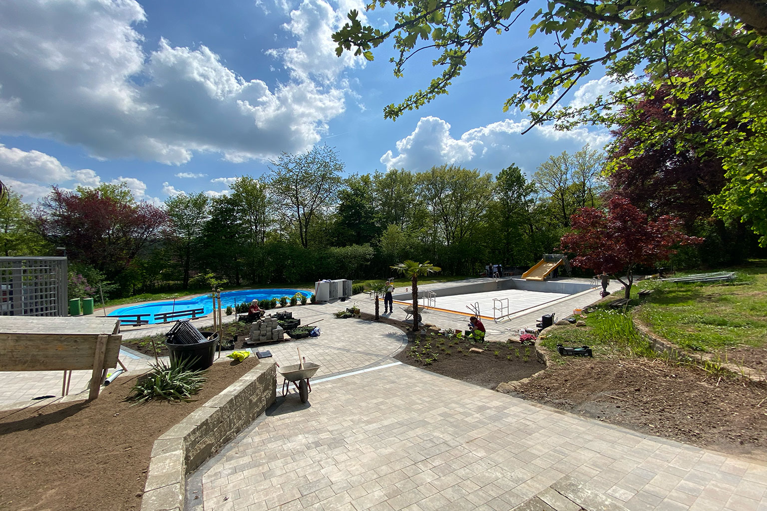 Umbau des Nichtschwimmerbeckens inkl. Edelstahlauskleidung, Umbau des Planschbeckens inkl. Folienauskleidung (70 qm), Neubau der Außenanlagen um Plansch- und Nichtschwimmerbecken (450 qm) Bepflanzungs- und Begrünungsarbeiten (100 qm), Neubau der Zugangspforte mit Tiefbau und Toranlage, Umbau der Wassertechnik für das gesamte Freibad mit neuer Filtertechnik (4 Filteranlagen), Rohrleitungsbau mit Grabarbeiten (300 m PEHD Druckleitung), neue Steuerungs- und Regelungstechnik,, Elektroleitungen (2.000 m), Umbau der Badewasserheizung mit neuer Gastherme, Maurer- und Betonarbeiten, Neubau Druckleitungen, Neubau begehbarer Pumpenschacht als Ortbetonbauwerk.