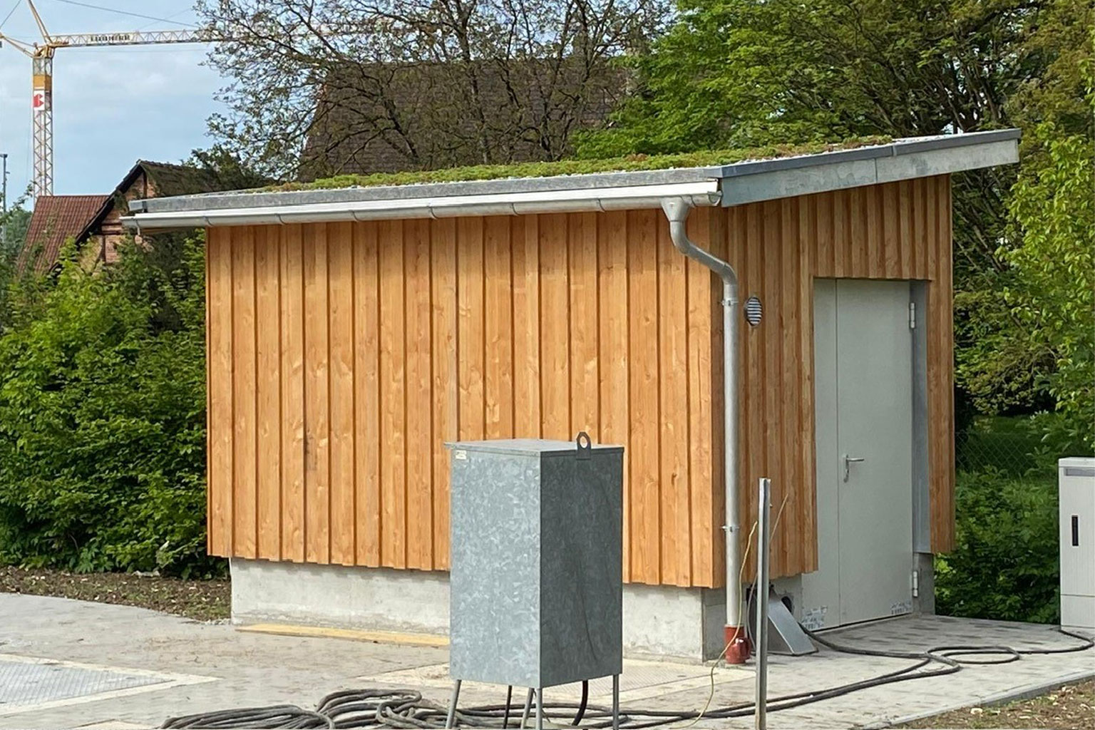 Die Elektrozuleitungen mit Leuchten unter dem Dach sind zu ersetzen, sowie die Lampenmasten am Vorplatz mit Tiefbauarbeiten.