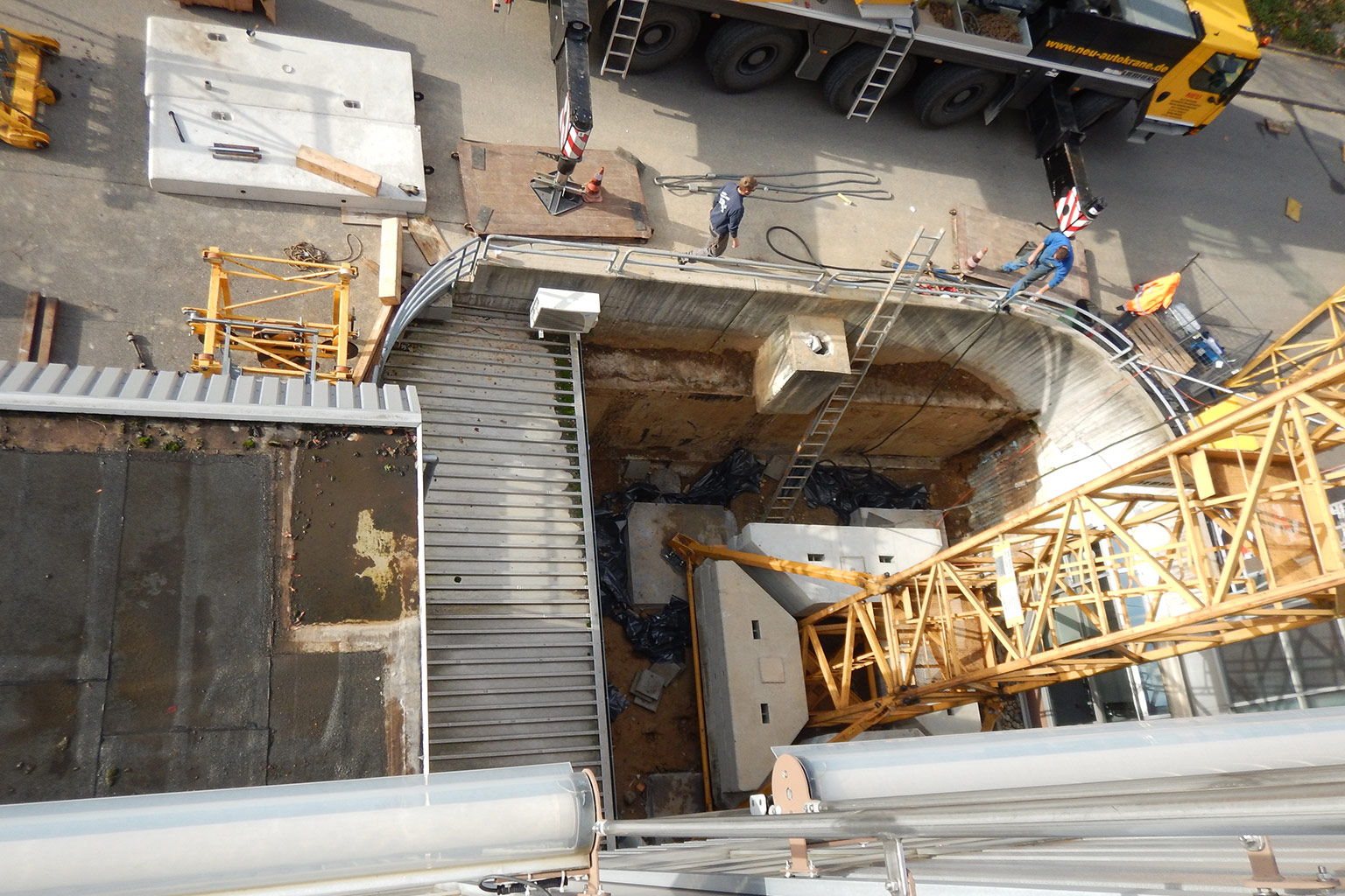 Es wurden Abbrucharbeiten im Bereich der Bodenplatte, Vorsatzwand und des Wandkopfes sowie Stahlbetonarbeiten im Bereich der Bodenplatte, Vorsatzwand und Wandkopfes vorgenommen.