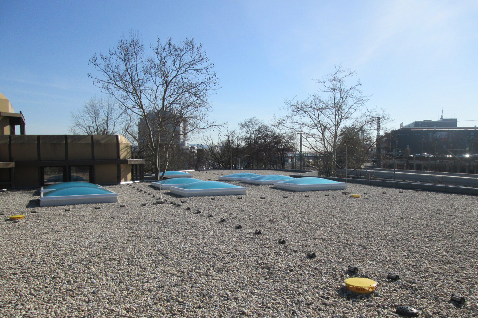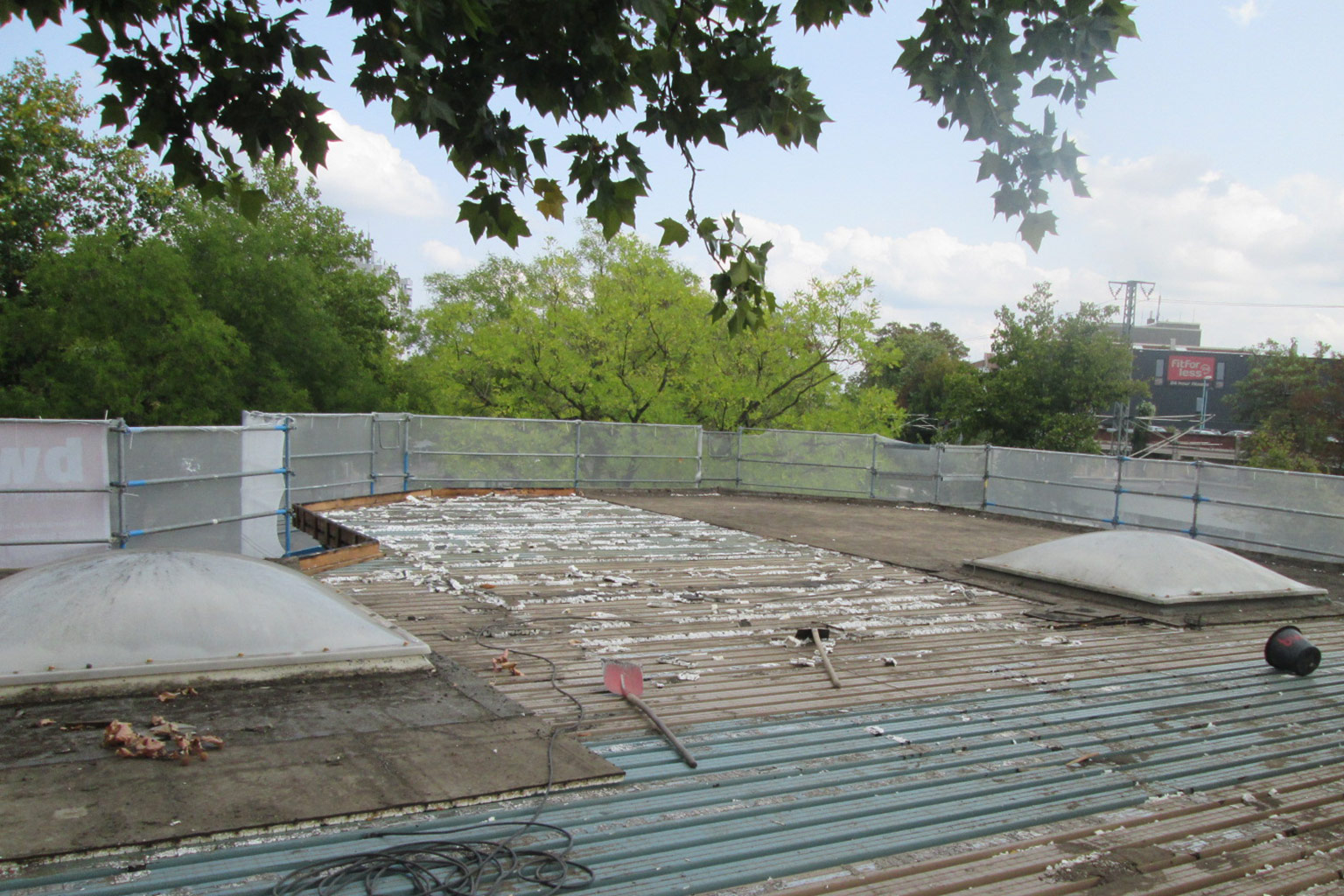 Rückbau und Erneuerung Dachhaut: 730 qm mit 10 Lichtkuppeln