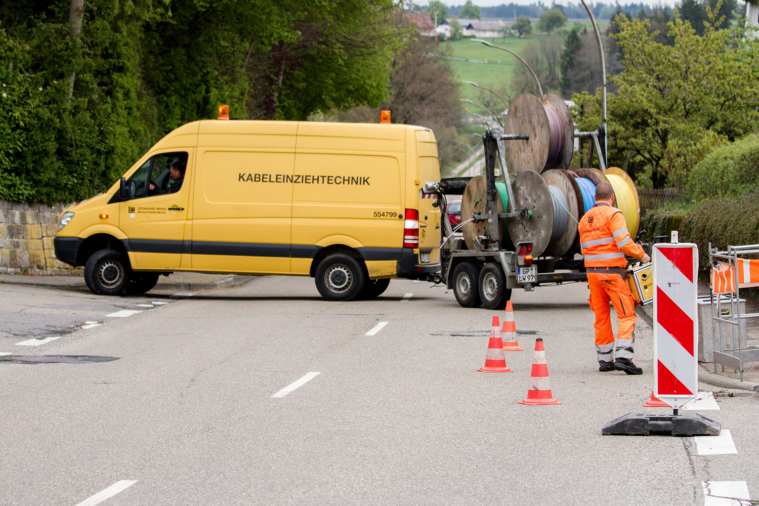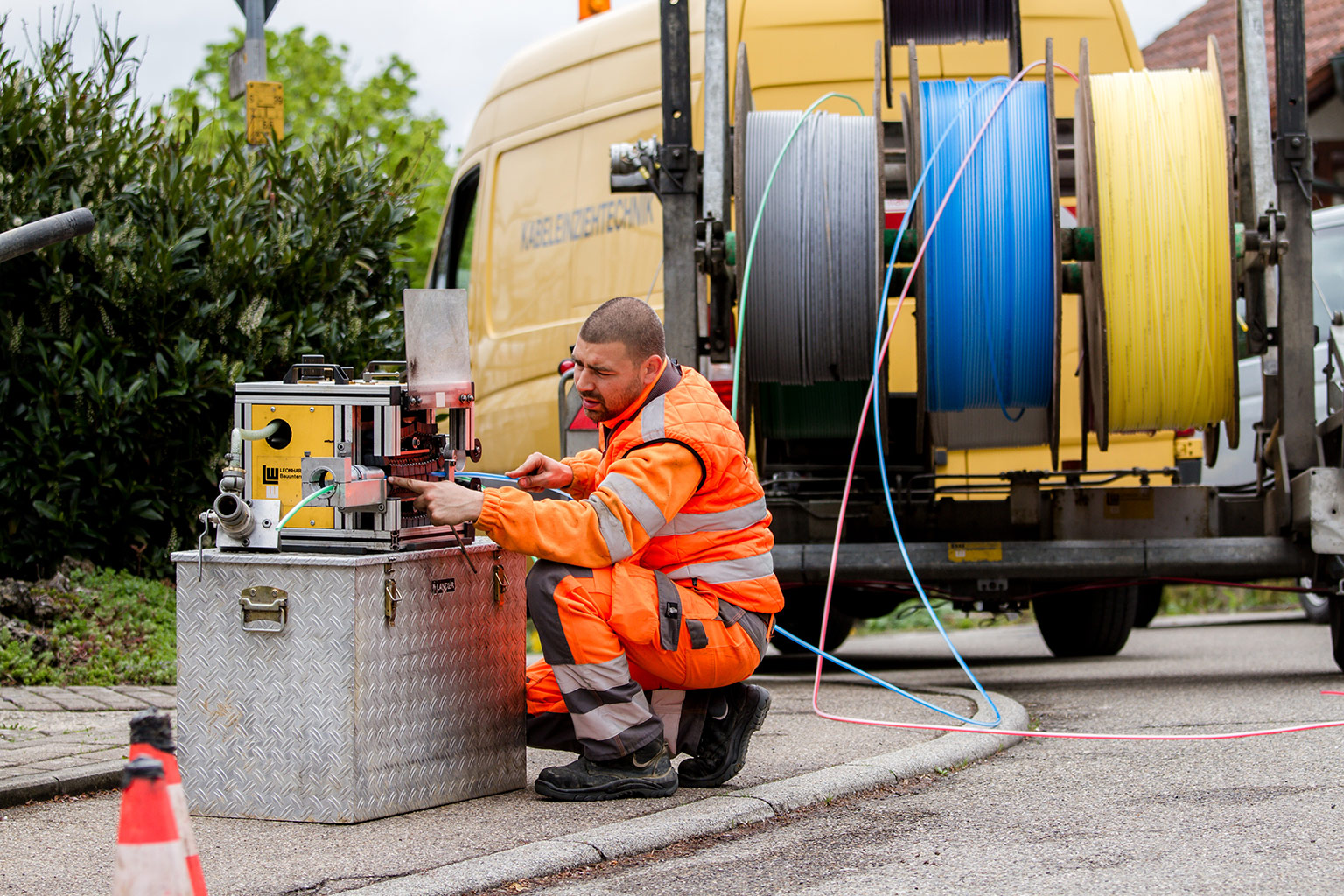 Das Team der Kabeltechnik führt mit über 100 gut ausgebildeten Mitarbeitern und modernstem Equipment alle für die Errichtung von Telekommunikationsnetzen sowie intelligenter Stromnetze erforderlichen Montage- und Kabelverlegearbeiten aus.