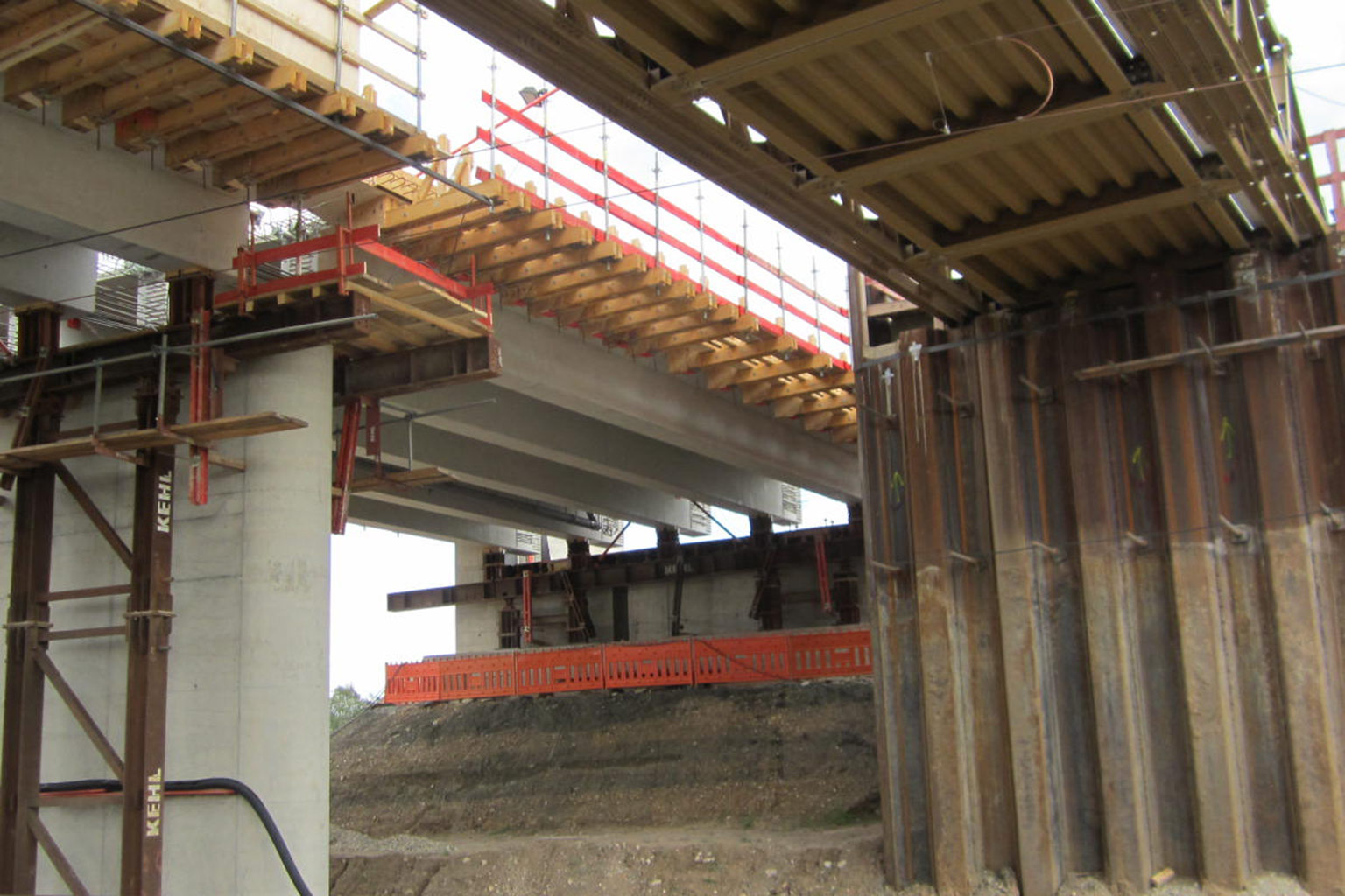 Neubau Eisenbahnüberführungen, Bauart in der Ausführung dreifeldriger Spannbeton oder als Rahmenbauwerk (5 EÜ-Bauwerke, 2 SÜ-Bauwerke und 1 Rückhaltebecken)