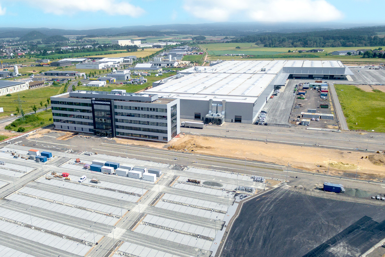 Neue Firmenzentrale – drei Hallenschiffe und ein Büroanbau