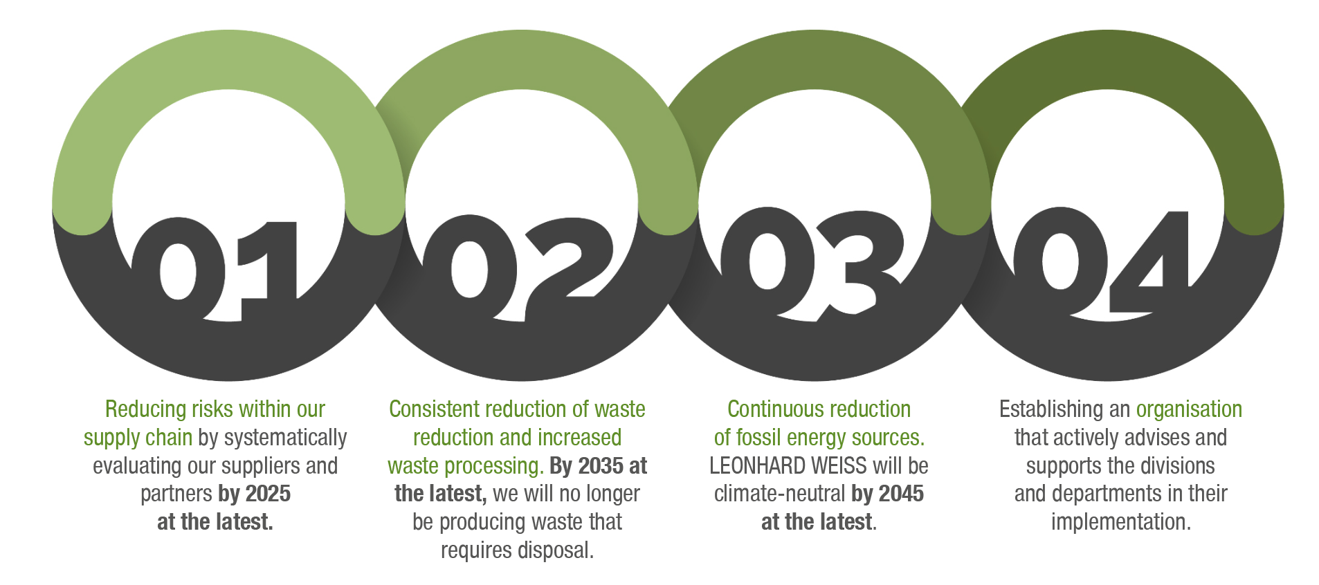 Four concrete sustainability objects were developed from the comprehensive points of focus in connection with our LW.STRATEGY: